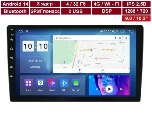 Автомагнитола (планшет) Mekede M500S 4/64 с операционной системой Android оборудована большим сенсорным экраном, выходом для камеры заднего вида (опция), GPS навигацией, системой громкой связи Bluetooth, модулями 4G и Wi-Fi. Отличное многофункциональное устройство с демократичной ценой.
