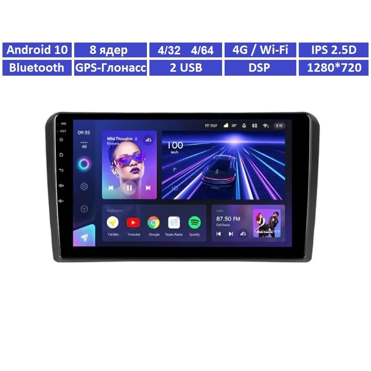 Купить штатную магнитолу Teyes CC3L для Audi A4 2004 - 2008 в Донецке (ДНР). Android, скоростной процессор, IPS монитор 1280*720, 4G/5G/Wi-Fi, GPS / Глонасс навигация, Bluetooth, USB, DSP. Надежный и качественный аппарат с демократичной ценой и прекрасным функционалом. Teyes CC3L – самая популярная автомагнитола на Android 10. Лучшее соотношение «Цена / Качество».