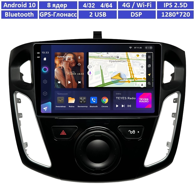 Teyes CC3L для Ford Focus 2012 - 2019 самая популярная автомагнитола на Android 10, с навигацией, Bluetooth, возможностью подключения видеорегистратора, камеры заднего хода.