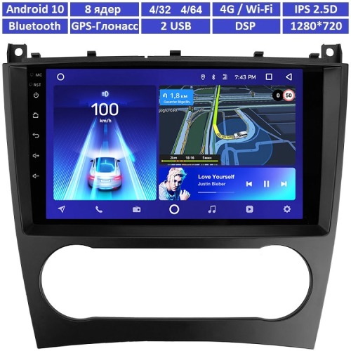 Teyes CC3L для Mercedes C W203 2004 - 2006 самая популярная автомагнитола на Android 10, с навигацией, Bluetooth, возможностью подключения видеорегистратора, камеры заднего хода.