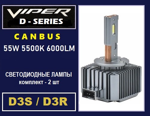 Светодиодные лампы (LED) для авто Viper D-Series D3S / D3R служат для переоборудования ближнего и дальнего света автомобилей с цифровой электрической частью. Лампа оборудована универсальным адаптером CAN и стабилизатором. Техническое исполнение светодиодных ламп позволяет улучшить дорожное освещение. В комплект входят две светодиодные лампы. Цена указана за комплект.